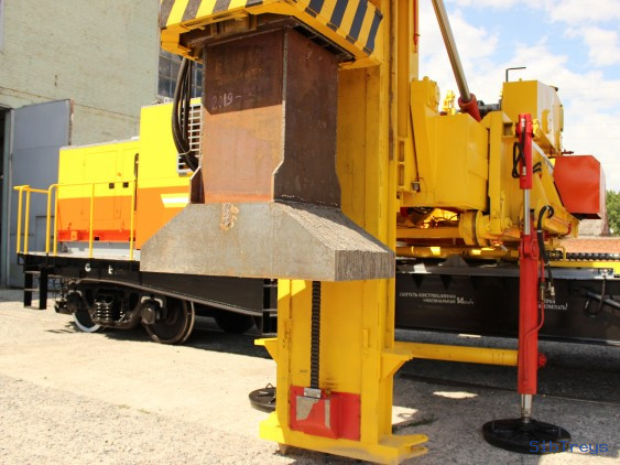 Агрегат для вибропогружения свайных фундаментов опор контактной сети представляет собой самоходную железнодорожную платформы.